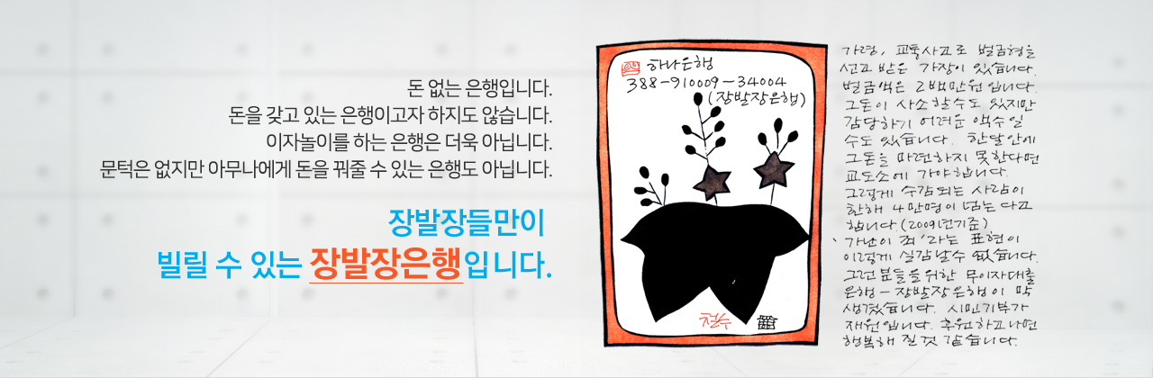 다만 한 가지 분명한 건 채찍을 든 부성의 권력, 배제의 권력, 약자에게는 한 없이 간한 유법체체제(자베르체제)에서 사회적 모성을 품은 따뜻한 은행이고자 합니다. 가난은 그 자체로 처벌입니다. 장발장은행은 돈이 자유를 앗아가는 세상을 한 뼘이라도 밀어내고자 합니다.