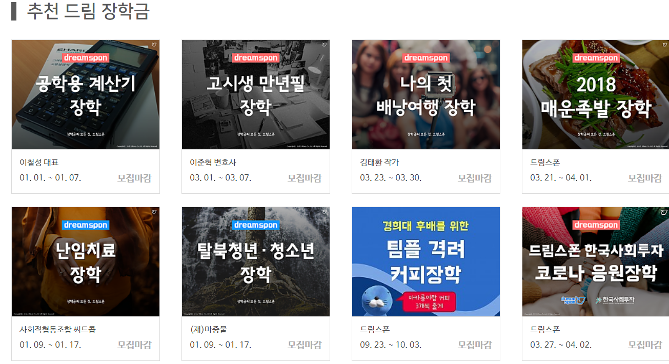 1) 접수 방법 국내 최대 장학금 플랫폼 드림스폰 홈페이지 신청 접수(온라인 신청)